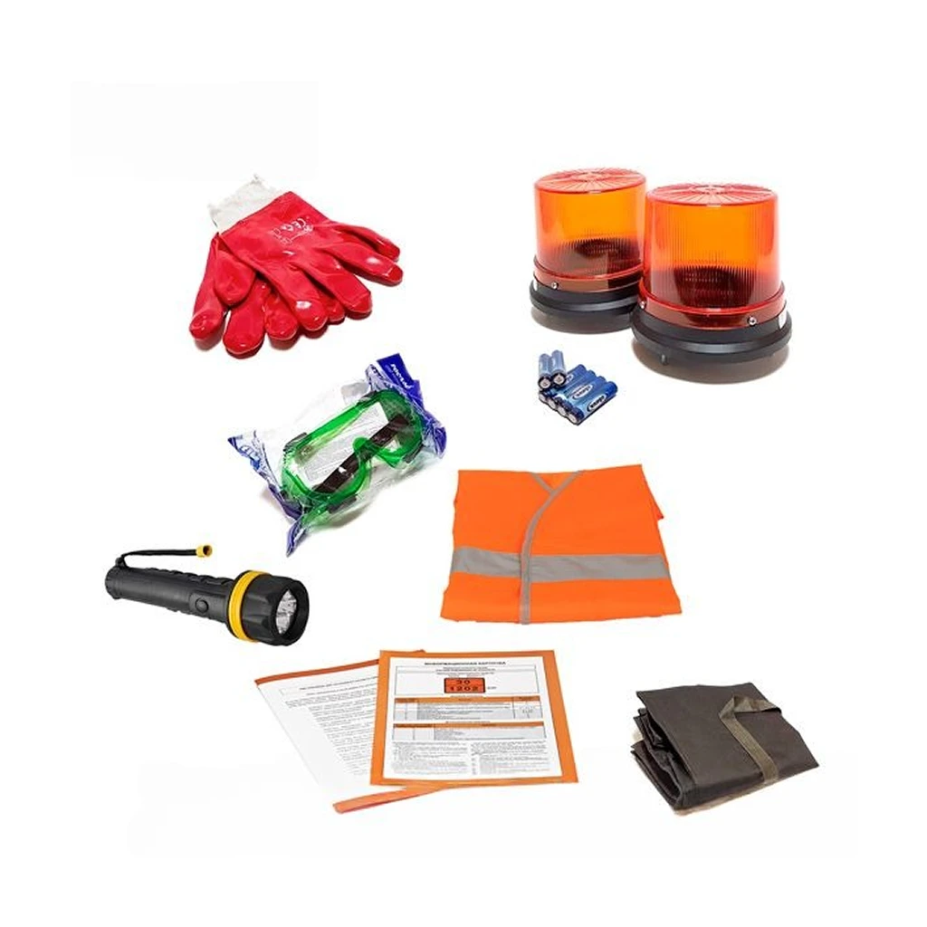 Комплект ADR для 1 и 2 класса опасности: сумка, очки, жилет, фонари, перчатки, инструкция. Соответствует ДОПОГ-2023. Для грузов 1.1–2.2 классов.