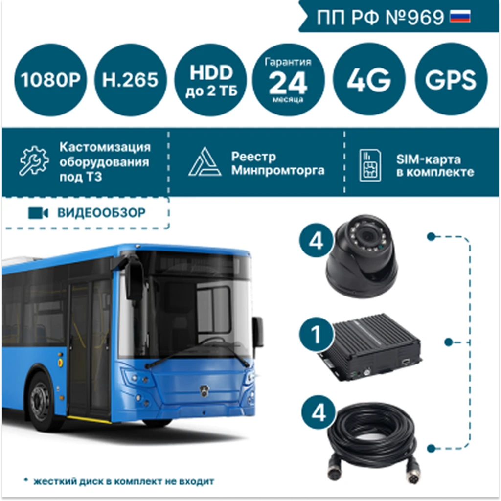 - 4х канальный регистратор NSCAR F864 ver.02 HDD с опциями 4G+GPS/Глонасс,