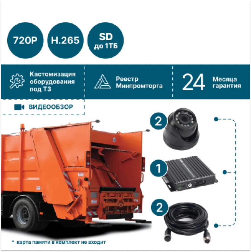 Комплект видеонаблюдения NSCAR MT201_SD - оптимальное решение для базового оснащения мусоровозов системой видеоконтроля.