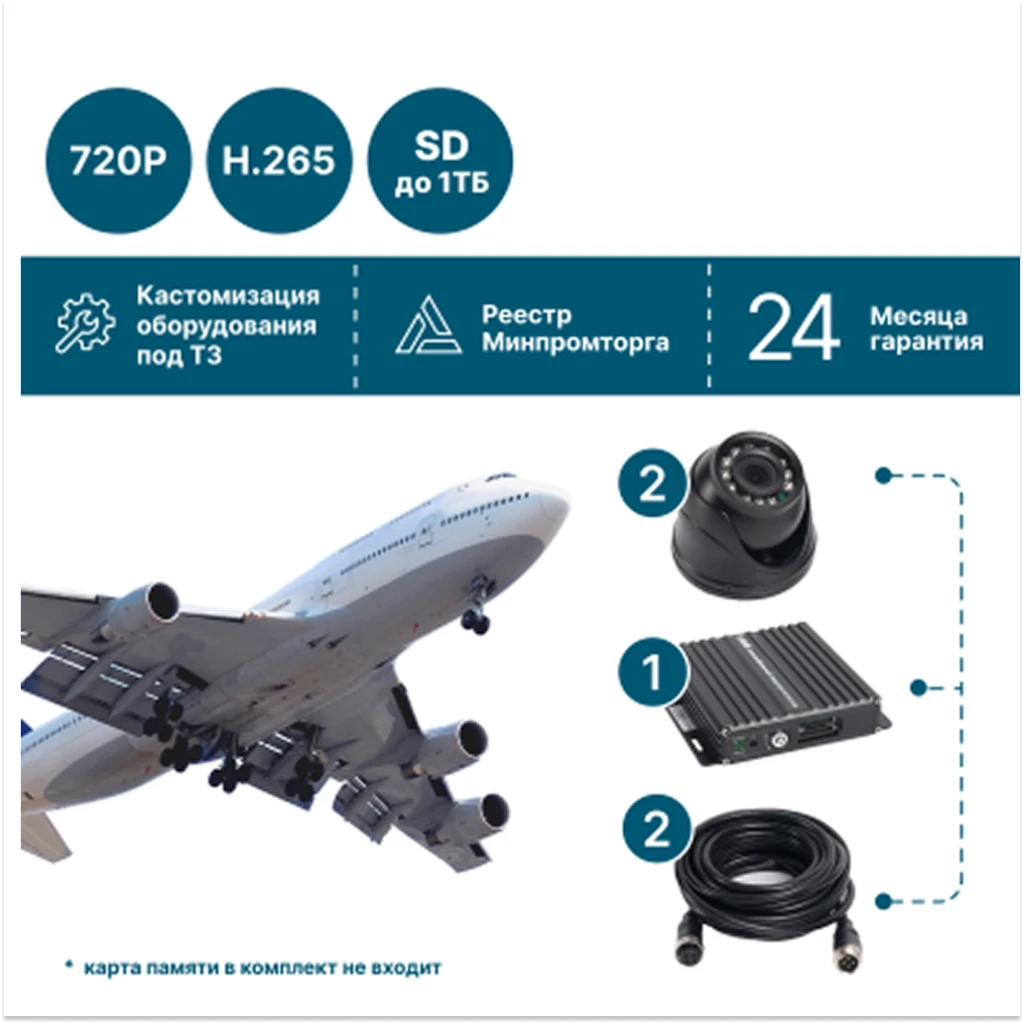 Комплект видеонаблюдения для воздушного транспорта на 2 камеры NSCAR ST201_SD