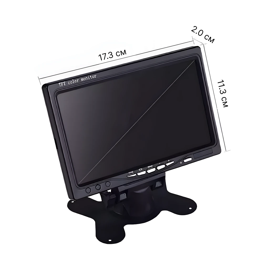 Компактный монитор для транспорта с диагональю 7", ярким экраном и универсальными видеовходами. Подходит для грузовых автомобилей, автобусов и автошкол.