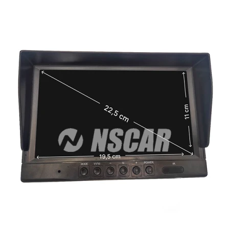 Монитор NSCAR 9.0 – это 9-дюймовый дисплей, предназначенный для использования в системах видеонаблюдения на транспорте. Он обеспечивает четкое отображение видео с камер благодаря разрешению 1024×600 и яркости 400 кд/м².